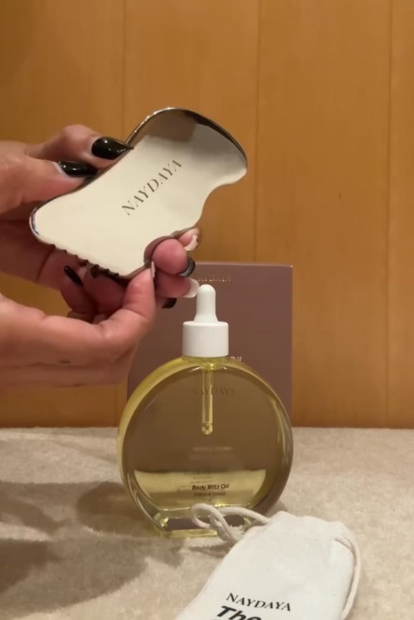 Gua Sha is a technique that involves massaging the skin to relieve tension, reduce puffiness and sculpt. Our take on Gua Sha helps you target your face, neck and jawline with a targeted massage tool. Sculpt away...