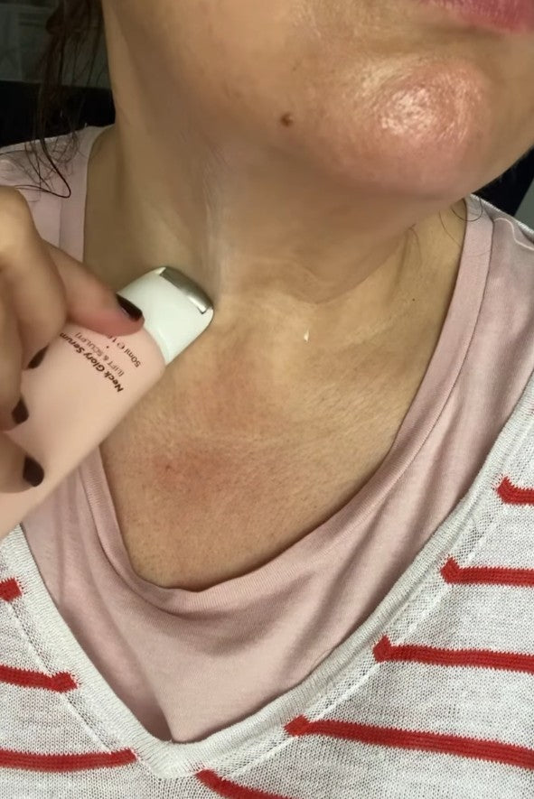 Remove cap, twist to ON. Gently squeeze out the serum onto the roller. Using the roller applicator, gently massage neck, décolletage and chest.